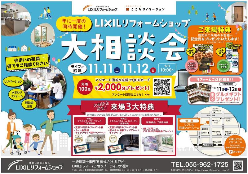 『LIXILリフォームショップ 大相談会』11/11(土)12日(日)開催します。