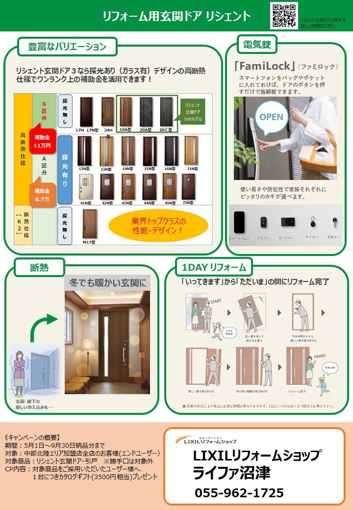 節水や省エネ商品などを含みつつ「リフォーム店ライファ」のご案内となっております。
