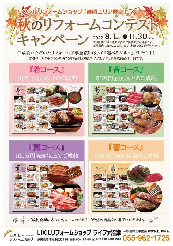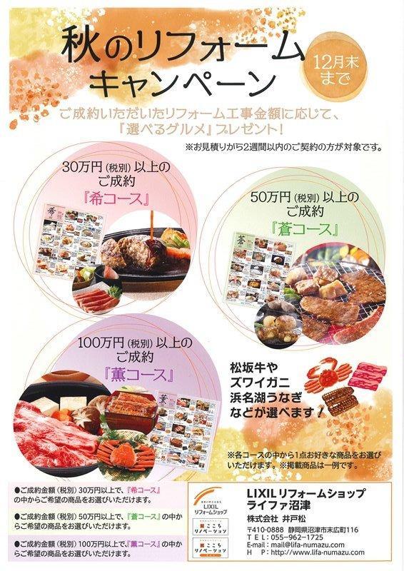 ライファ沼津秋のキャンペーンを9月1日より3ヶ月間実施します!