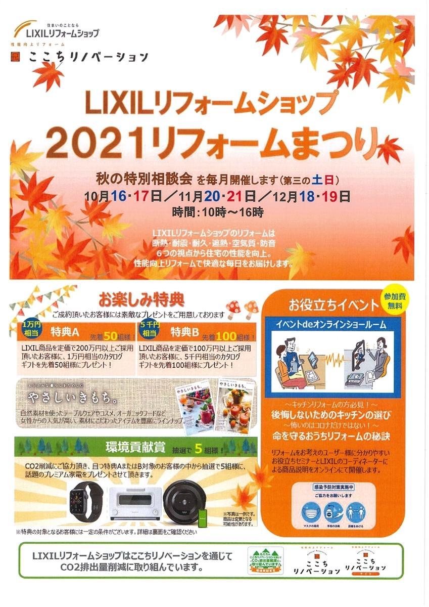 秋の特別相談『LIXILリフォームショップ2021リフォームまつり』