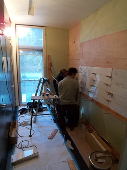 配管などを移設した後、下地の壁を作ります。