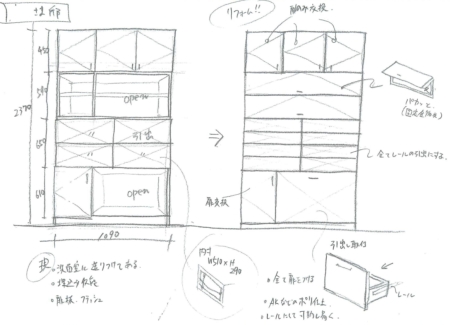 ご主人様の転勤に伴い沼津にあるご実家を自分好みにリフォームします。主に内装のリフォームからのお話でしたが細かな収納や水まわりの交換などいろいろなご相談をお受け賜りました。予算的な部分において設備機器などのコストは落としご提案。また、配色やアクセサリーの選定などの御施主様のセンスには脱帽でした。